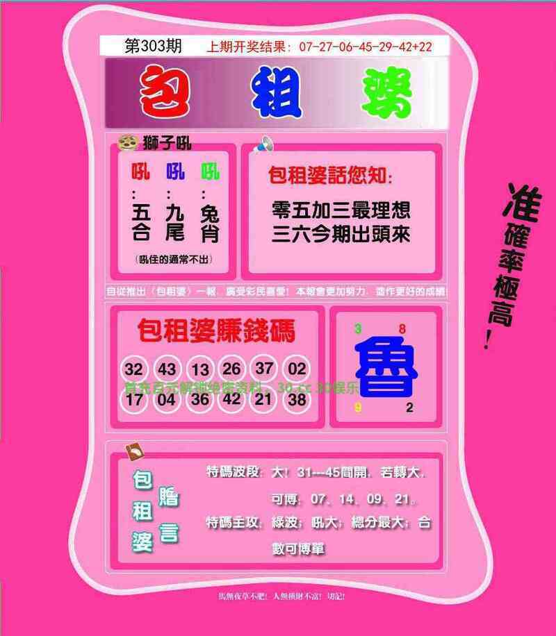| 308期:七肖 | 猴猪蛇狗龙羊兔 | 發00准 |